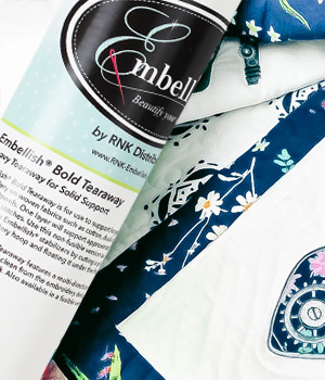 Embellish® Bold Tearaway is a tightly woven, heavy duty, stabilizer made using a unique “Non-Woven” technique, and it is used to support large or dense embroideries on stable woven fabric such as: cotton, duck cloth, twill, and denim. It features a multi-directional tear capability, easily pulling away clean from the embroidery design for a crisp look on the front and back. It is also available in a fusible version. Embellish® Bold Tearaway is recommended to be used as a “floater” under the hoop when used in conjunction with Embellish® Fusible Bold Tearaway that has been ironed to the back of woven fabric. Adding a “floater” of Embellish® Bold Tearaway adds additional support to the fabric when using a design that has more than 12,000 stitches in a 4”x4” hoop.