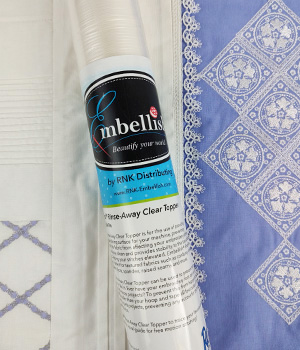- Cut a piece of Embellish® Rinse-Away Clear Topper slightly larger than the size of the design and place it on top of the fabric.