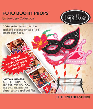 CD Includes: 14 fun machine appliqué designs for the 8” x 8” embroidery hoop. Perfect for all ages. The collection includes digital cutting appliqué files plus the original artwork SVG files that work in your digital cutter for endless projects!