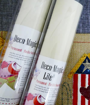 Pressing from the fabric side – Fuse Deco-Magic® to the fabric using a medium/high temperature on the iron (No Steam). Hold the iron in place for at least 3 seconds to set the bond.