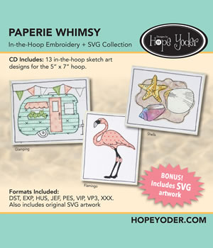 CD Includes: 13 in-the-hoop sketch art designs for the 5″ x 7″ hoop.