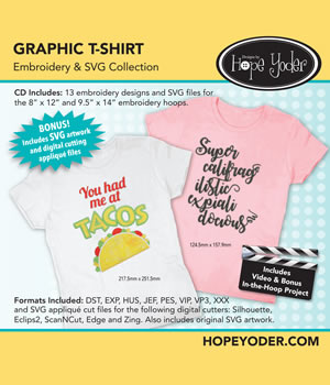 CD Includes: 13 large machine embroidery designs for the 8″x12″ and 9.5″ x 14″ embroidery hoop. Three designs include applique cut files to use with your digital cutter. Included are mirror image, SVG heat transfer vinyl designs and video on HOW TO MAKE TRANSFER VINYL T-SHIRT! Go a step further using Craft-N-Cut software with our video files and files to make an in-the-hoop “#coolit” or “#hotstuff” gel pack cover.