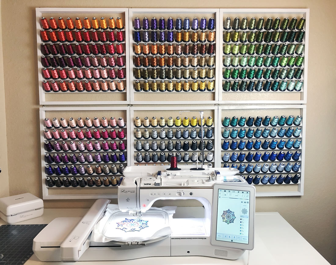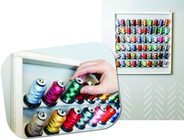 Show off your threads with the RNK Easy Access Thread Rack! A rustic finish to this wooden, wall mountable rack adds a quaint charm and utility, holding up to 60 spools or cones! Limited assembly required, as easy as hanging a picture!