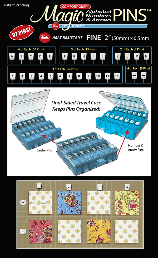Keep block pieces, units and rows in order with Numbered & Lettered pins.