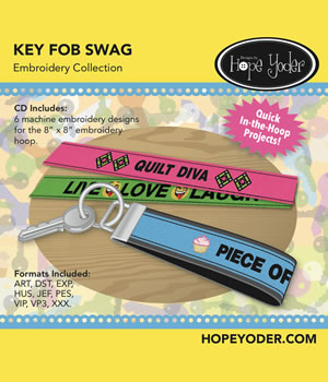 CD Includes: Six key fob designs including one blank design for personalizing with your own text, monograms or using our Button-Ups Small Sized Embroidery Collections. This collection includes step-by-step directions and a supply list plus helpful hints from Hope for embroidering on grosgrain ribbon.