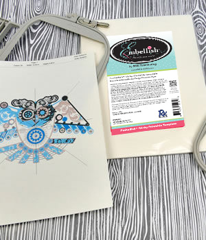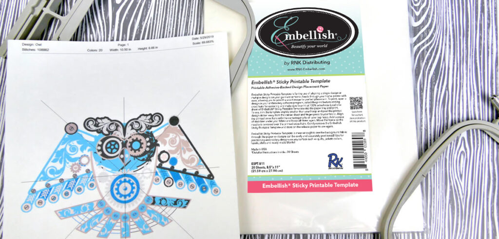 - From your embroidery software program, print the design on the fibrous side of the Embellish® Sticky Printable Template. Trim the paper as desired and mark TOP to indicate the top of the design and hoop.
